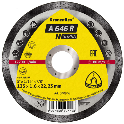 DISQUE A TRONCONNER ACIER A 646 R SUPRA 125X1,6X22,23MM |