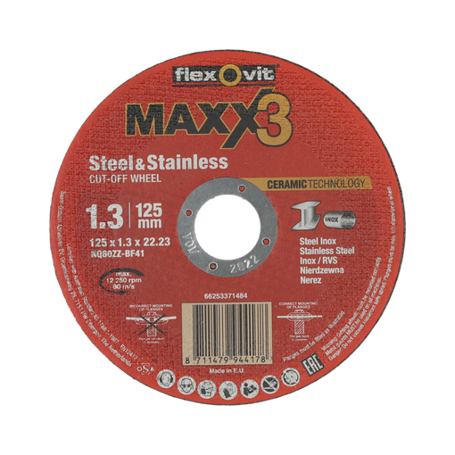 DISQUE A TRONCONNER MEULE PLATE MAXX3 125X1,3MM ACIER/INOX |