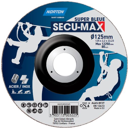 DISQUE DE TRONCONNAGE ET EBARBAGE SUPER BLEUE SECU MAX 125X2,2X22,23 |