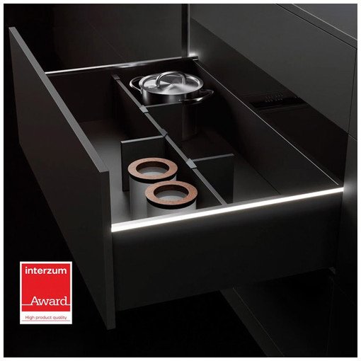 Éclairage de mise en valeur pour AvanTech YOU, au choix à l intérieur du tiroir ou orienté sur la pièceInstallation ultérieure possible en option pour les hauteurs du système 101 / 139 / 187 / 251 mm'c0 recouperLumière diffuse, température de couleur 4000 K1 kit par tiroir, y compris 1 pack de batteries rechargeables via micro USBÉclairage automatique à l ouverture et extinction automatique à la fermeture du tiroir.Kit composé de :2 kits de lampes LED1 aimant1 batterie1 porte-batterie autocol [...]