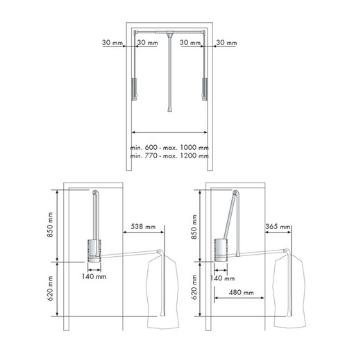 ELEVATEUR PENDERIE DBL L440-610 AC ANTHRA CH10KG |
