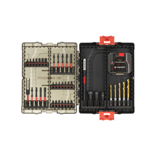 Le coffret modulaire de taille moyenne contient des accessoires conçus pour les impacts, un petit compartiment de rangement en vrac et peut être relié à des coffrets de taille petite ou moyenne 25 mm : Hex 3, Hex 4, Hex 5, Hex 6, Hex 7 x2, Hex 8, PH1, PH2, PH3, PZ1, PZ2 x2, PZ3, T10 x2, T15, T20 x11, T25, T30, T40. Contenant un petit coffret de rangement en vrac. 63 mm : Hex 4, Hex 5, Hex 6, Hex 7, T15, T20, T25, T30,T40 Embouts de mèches en métal de titane (dent hexagonale) : 4 mm, 4,2 mm, 5 mm, [...]