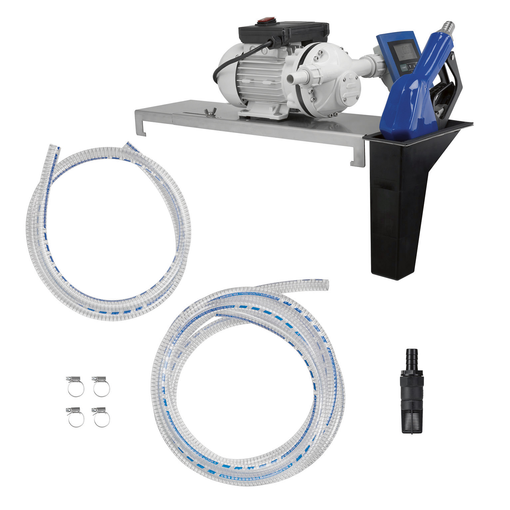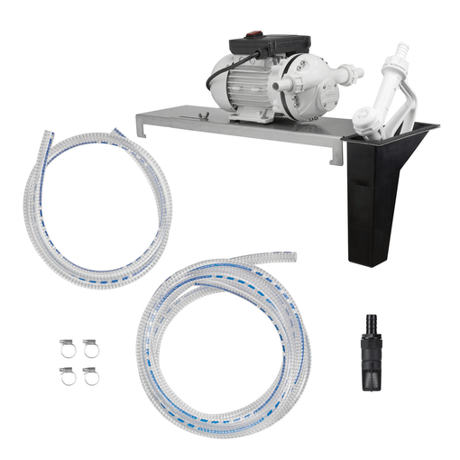 Unité de transfert de carburant AdBlue®, acides organiques, alcool organique, détergents et tout autre fluide chimique soluble dans l'eau compatibles avec les matières des composants de la pompe débit : 35 L/min hauteur d'aspiration : 3 m pression de refoulement : 1,6 bar raccordement aspiration/refoulement : 1'' G M équipée de : 1 pompe à membrane auto-amorçante 230 V - 0,37 kW avec by-pass intégré (durée de fonctionnement : continu) 1 plaque de base pour montage sur fût 1 clapet de pied a [...]