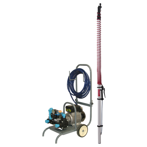 Pompe radiale sur chariot avec membranes en Viton et culasse en polypropylène collecteur de produit en polypropylène régulateur de pression manuel tuyau d'aspiration avec crépine Inox, longueur 1,50 m (Ø 16 x 22 mm) tuyau retour longueur 1,50 m (Ø 12,5 x 18 mm) tuyau d'alimentation lance longueur 10 m (Ø 8 x 14 mm) chariot : roues Ø 125 mm ; brancard repliable, avec support tuyau canne de pulvérisation en fibre de verre buse réglable et orientable poignée ergonomique (gâchette 4 doigts) tuyau [...]