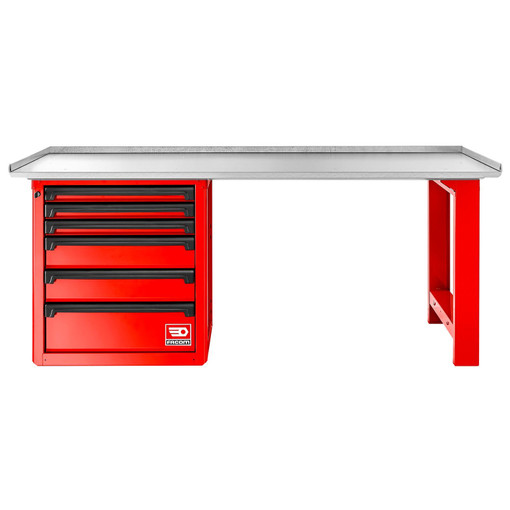 ETABLI AVEC PLATEAU GALVANISE ET MEUBLE BAS 6 TIROIRS ROUGE |