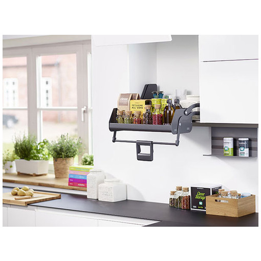 Les ferrures iMove permettent de mettre à portée de main et sans effort les produits stockés dans les parties les plus hautes des meubles suspendus. Facilement utilisable par les personnes âgées, de petite taille, à mobilité réduite ou par les enfants. Le fonctionnement est doux et fluide grâce aux vérins qui accompagnent la course de la ferrure aussi bien en descente qu au relevage.Livré avec visserie et gabarit de perçage.