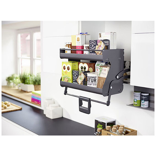 Les ferrures iMove permettent de mettre à portée de main et sans effort les produits stockés dans les parties les plus hautes des meubles suspendus.