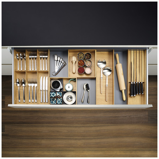 Pour tiroir d'une profondeur supérieure à 500 mm.Recoupable en largeur et en profondeur.