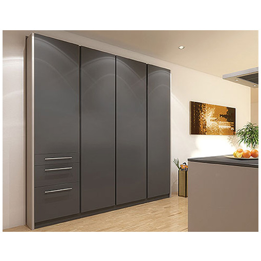 La ferrure Hawa Concepta permet l escamotage latéral des portes bois. Elle se monte sur une contre-cloison qui s'intègre dans les meubles, armoires, dressings, niches,... Utilisable aussi pour aménagement de séparations sol/plafond. Peut se fixer sur paroi extérieure du support avec habillage. Montage simple et rapide. Encombrement réduit. Rotation par charnières invisibles fournies. Ferrure complète pour un vantail comprenant : les profils de guidages, le galet de guidage, le croisillon, le prof [...]