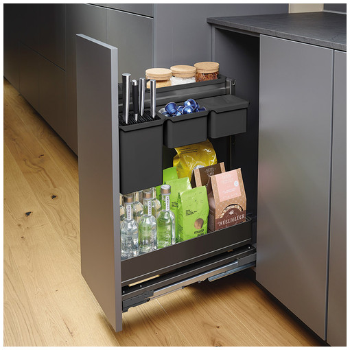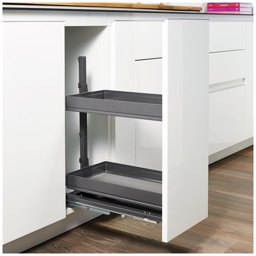 Combiné polyvalent pour meuble bas.Personnalisable avec les tablettes Arena Pure, Arena Style et kits UBOXX. Combinaison possible entre tablettes et bacs UBOXX.Grande flexibilité de rangement pour de multiples applications.Coulisses sortie totale avec rappel fin de course sur amortisseur.Assemblage rapide ClickFixx de la façade sur la ferrure avec réglage simplifié 3D.Livrée sans rangement.