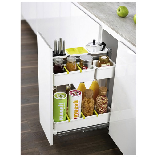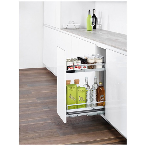 Combiné polyvalent pour meuble bas.Personnalisable avec les tablettes Arena Style ou Arena Classic, Libell, fil chromé et kits UBOXX. Combinaison possible entre tablettes et bacs UBOXX.Grande flexibilité de rangement pour de multiples applications.Coulisses sortie totale avec rappel fin de course sur amortisseur.Assemblage rapide ClickFixx de la façade sur la ferrure avec réglage simplifié 3D.Livré sans rangement.
