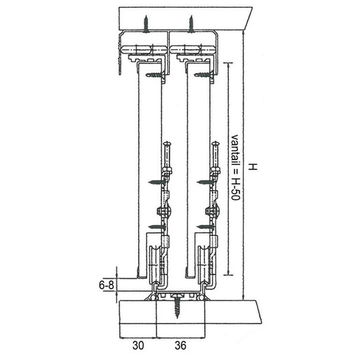 Ferrure coulissante par le bas pour vantail bois. Cette ferrure trouvera sa place pour l'aménagement de dressing, d'armoire de bureau et de placard. Des amortisseurs (en options) renforceront le confort de fonctionnement des vantaux. Pour panneau épaisseur 16 mm. La garniture complète pour 2 vantaux comprend : - 4 chariots à galet nylon sur roulement à bille encastrables Ø35x124 mm - guides haut sur roulements à billes - 2 butées fin de course - 2 profils en U aluminium longueur 1000 mm - 4 pr [...]