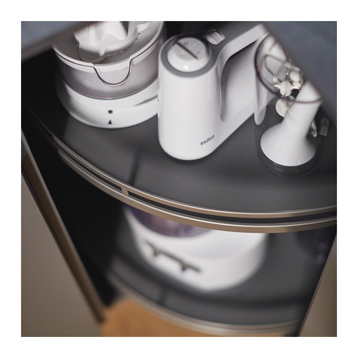 Utilisables dans des caissons d angle de 800 ou de 900 mm.Hauteur de la ferrure réglable de 660 à 860 mm.Mouvement particulièrement harmonieux fonctionnant sur amortisseur. Ferrure prémontée pour une pose rapide. Montage des plateaux possible après pose de la ferrure dans le caisson. Montage rapide Clickfixx des façades sur la ferrure sans outil.