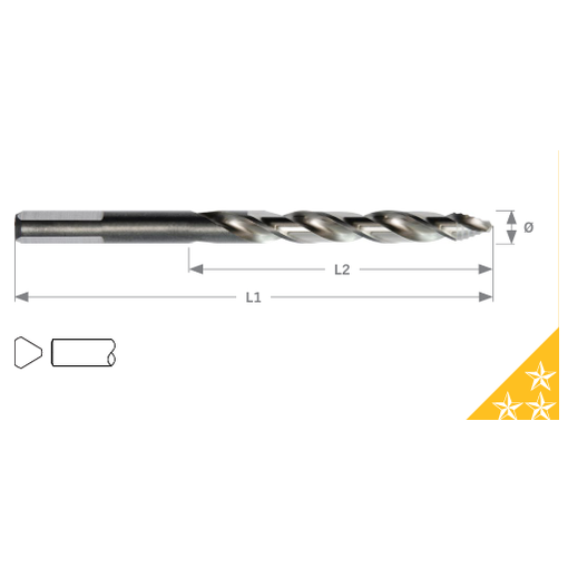 Affûtage : en croix 118° à partir Ø 3,0 mm.