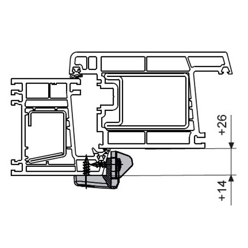 Réglage en vertical sur profil avec recouvrement de 14 à 24 mm.