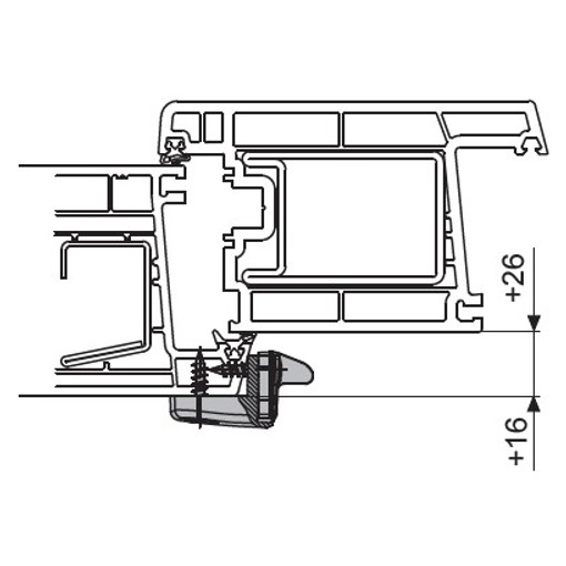 Réglage vertical sur profil avec recouvrement de 16 à 26 mm.