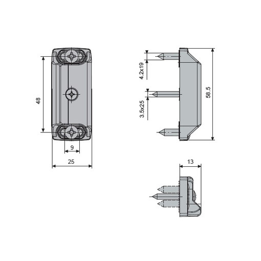 Gâche en zamak pour serrures centrales, pênes haut et bas.