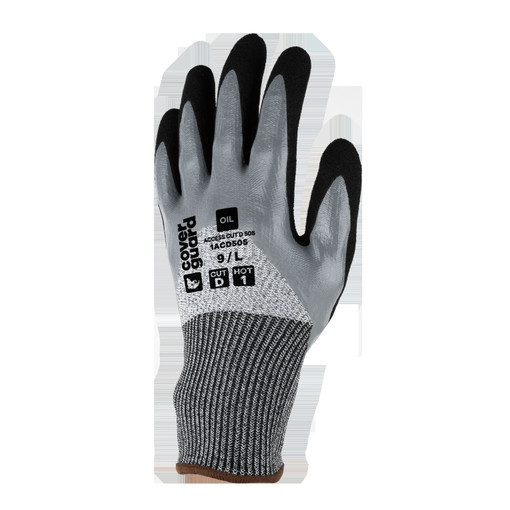 Double enduction : 1 - nitrile lisse 3/4, 2 - nitrile finition sandy enduction palmaire.