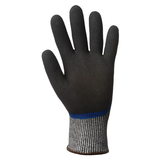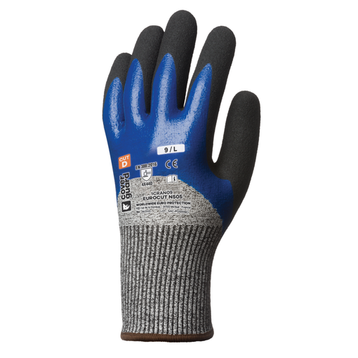 Double enduction 3/4 de nitrile bleu lisse et nitrile noir effet grainé de lapaume,