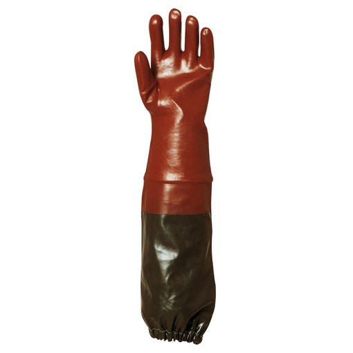 Gant 70 cm, PVC rouge, élastique de serrage, support coton, qualité supérieure.