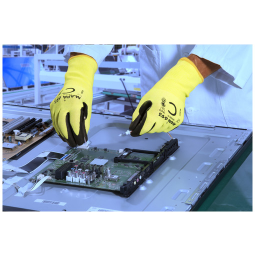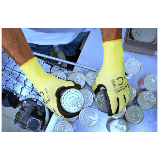 Confort, souplesse et grande dextérité grâce à sa jauge 18. Protection des appareils électroniques contre les décharges électrostatiques (ESD) et niveau de coupure C. Compatibilité avec les écrans tactiles et conforme au contact alimentaire. Gant avec une bonne visibilité pour une meilleure protection de l'utilisateur. Niveau de coupure facile à identifier grâce au marquage au dos du gant. Protection des appareils électroniques contre les décharges électrostatiques (ESD). Produit spécifiq [...]