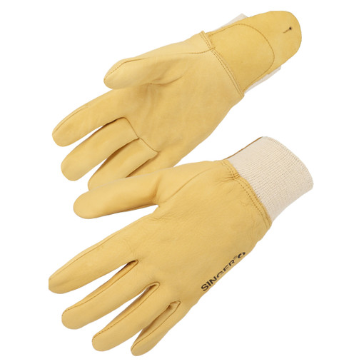 Poignet élastique avec protège-artère en cuir et boutonnière.