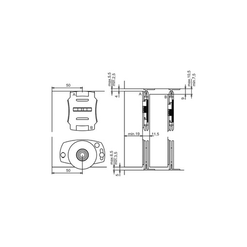 Ferrure pour portes coulissantes jusqu'à 45 kg par vantail.