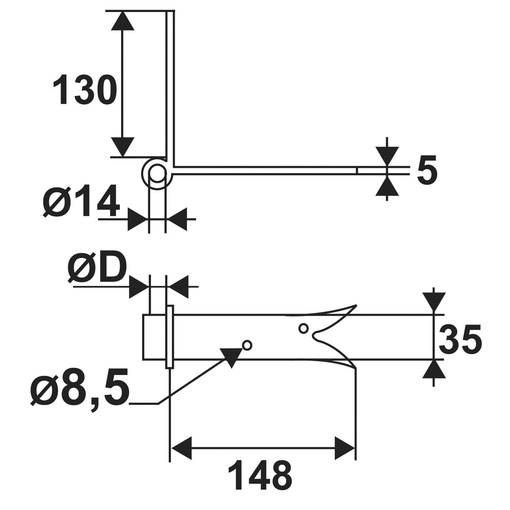 GOND D'ANGLE QUEUE DE CARPE AVEC AXE AMOVIBLE |