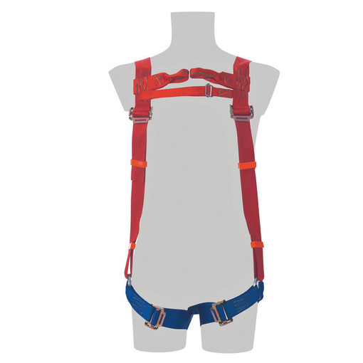 Harnais antichute en sangle polyester avec réglage des bretelles et des cuisses par boucles à serrage progressif