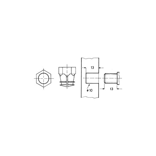 Insert laiton à frapper avec tête hexagonale.