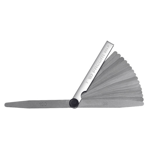 épaisseur des lames en 1/100 mm : 4 - 5 - 6 - 7 - 8 - 9 - 10 - 15 - 20 - 25 - 30 - 35 - 40 - 50 - 60 - 70 - 80 - 90 - 100.