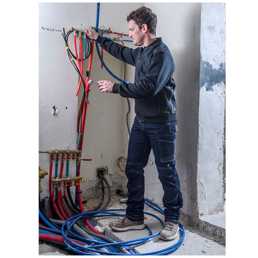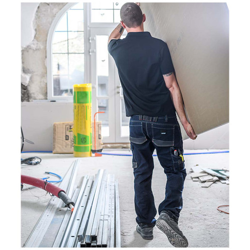 Avec son tissu stretch, il offre une grande aisance de mouvements, une coupe dessinée près du corps pour un look moderne. Les poches en bas volant et les renforts genoux sont d'autant de fonctionnalités essentielles au pantalon de travail. La composition du tissu allie confort grâce au coton et flexibilité de mouvements grâce à l'élasthanne. Un jean qui s'inscrit au sein de la gamme Work Attitude III. Tissu principal : 37% coton 37% polyester 1% élasthanne 25% polyamide 330 g/m². Tissu de renfo [...]