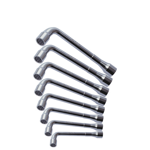6 pans; Tête coudée à 90°; Finition chromée; Chrome Vanadium;