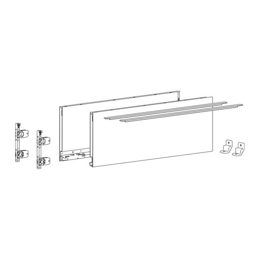 Coulisses vendues séparement.Le kit contient :- 1 profil de côté de tiroir, à droite et à gauche- 2 profilés design dans la couleur du profil de côté de tiroir- 2 attaches façade à visser- 2 stabilisateurs pour la paroi arrière- Accessoires de fixation