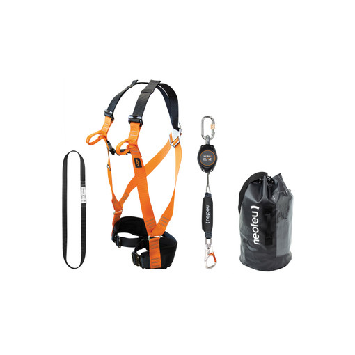 Kit muni d'un antichute à rappel automatique permettant à l'utilisateur une mobilité sur une distance maximale