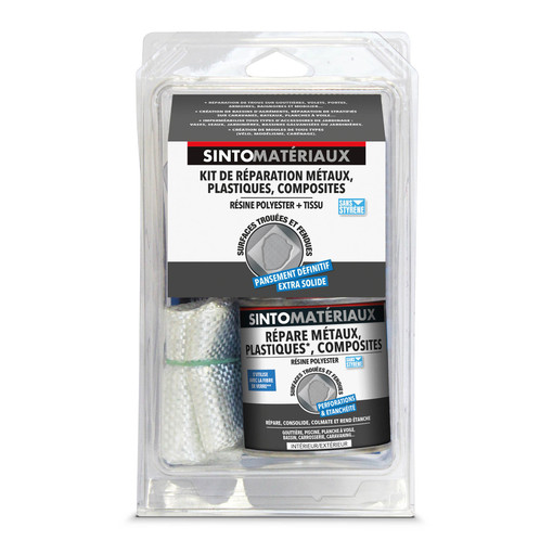 KIT DE REPARATION RESINE 250G + TISSU DE VERRE 1/4 M² SINTO |