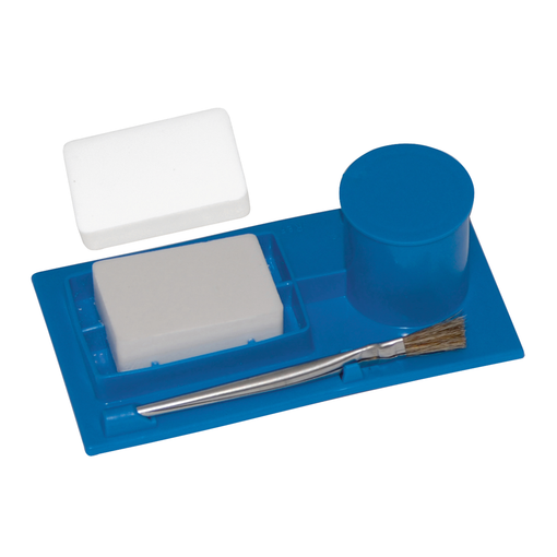 Composé de : 2 pains de sel ammoniaque 65 x 45 x 20 mm + 1 godet à acide + 1 pinceau crin de cheval