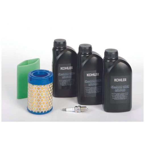 -0{Kit entretien pour moteur Kohler CH395 et CH440 comprenant huile, bougie et filtre à air.