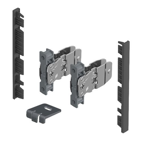 Kit de raccord pour profil façade Avantech You recoupable.Kit composé de :1 attache façade pour le profil de côté de tiroir, à gauche et à droite2 embouts1 stabilisateur pour la façade intérieureAccessoires de fixation