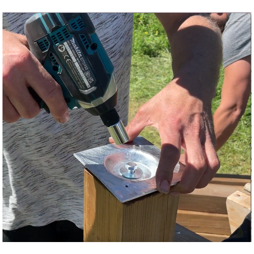 Kit de réhausse Co'met comprenant 1 embase 1 tirefond 8 x 80 TH 1 rondelle M8 LL et 2 vis de penture 6x80.