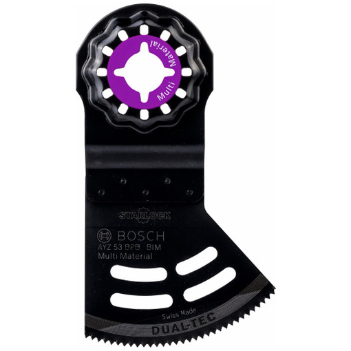 La lame Dual-Tec Starlock AYZ 53 BPB permet des coupes droites et plongeantes précises, pour bois et matériaux abrasifs