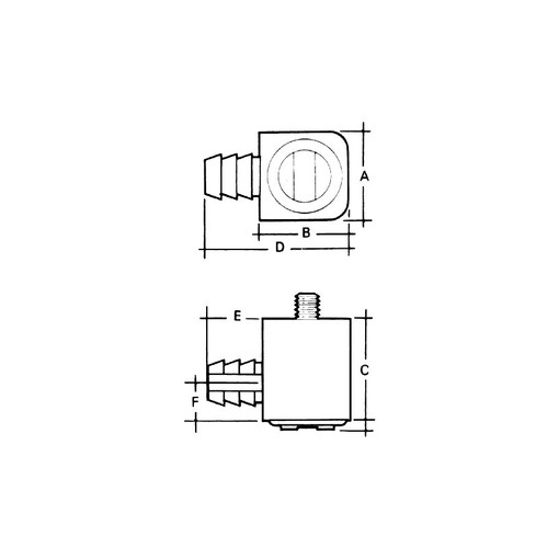 A = 16 mm, B = 16 mm, C = 19 mm, D = 26 mm, E = 10 mm, F = 7 mm