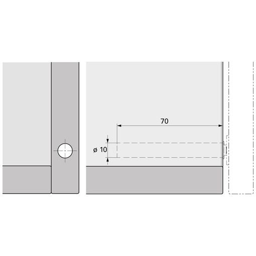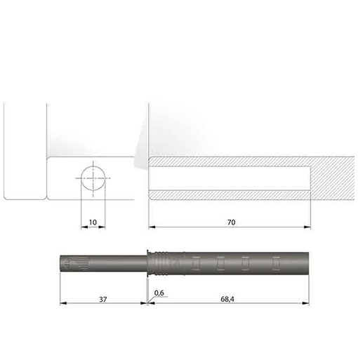 Encastrement Ø 10 mm, longueur 50 mm.