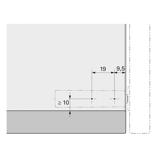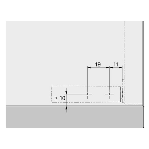 Utilisable avec façade équipée de tous types de charnières sans ressort (sauf charnières à ressort inversé).