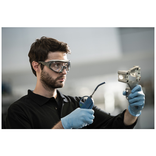 EN 166 et EN 170 Le modèle 6X1 allie la légèreté d'une paire de lunettes aux avantages du masque. Le cordon élastique peut être facilement remplacé par les branches réglables fournies à cet effet pour bénéficier d'une polyvalence absolue et d'une compatibilité avec un casque anti-bruits. Confort et simplicité d'utilisation s'ajoutent ainsi à la protection contre les liquides et grosses particules de poussières, garantie par la forme particulière de l'élastomère en contact avec le visage. [...]