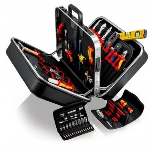 Valise à outils "BIG Twin" Électro63 outilsversion en ABS résistant, noirchâssis en aluminium enveloppant avec paroi centrale robuste, solidement fixée, charnières métalliquescomposition :1 x KNIPEX TwinKey® Clé universelle pour armoires de commande pour toutes les armoires et systèmes de fermeture standard1 x Pince universelle multifonctions1 x KNIPEX MultiStrip 10 Pince à dénuder automatique (0,03 10,0mm²)1 x Pince pour installations électriques (Ø 15 mm / 50 mm²)1 x KNIPEX ErgoStrip® [...]