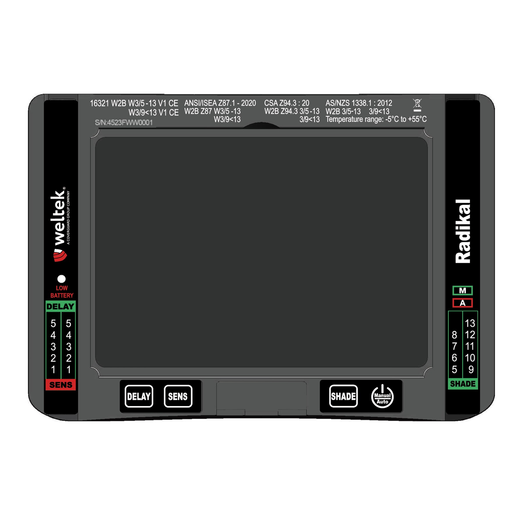 Désactivable, le Mode Auto-shade permet la sélection automatique d'une teinte foncée en fonction de l'intensité de soudage.