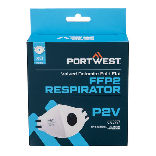 Masque pliable ffp2 a soupape dolomite p210 blanc 3 pieces