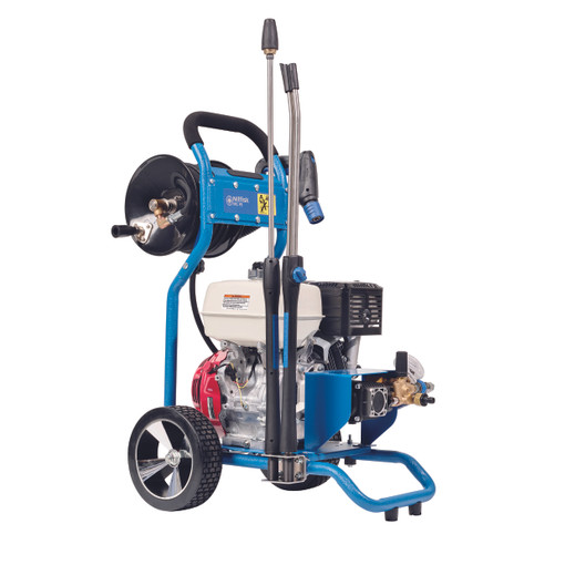 Équipement : pistolet PRO ERGO 2000 à couplage rapide des accessoires, enrouleur avec 20 m de flexible HP (armé tresse métal DN8), lance inox à couplage rapide «TORNADO Plus » (L 96 cm)à pression réglable munie d une buse HP «Tornado Plus» (100% + efficace), seconde lance inox «TurboHammerPlus» de série (Jet Rotatif), valve thermique sécurité surchauffe pompe de série, injecteur de détergent Basse Pression, débit réglable sur la pompe.