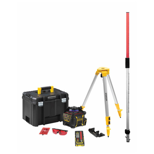 livré en pack complet : 1 niveau laser rotatif RL600 (piles-lunettes-cible-cellule + bride-mallette TSTAK) + 1 trépied aluminium standard (profilé aluminium, blocage des pieds par système quick clamps , plage d utilisation de 75 à 153 cm, filetage 5/8 , tête large pour plus de stabilité) + 1 mire à lecture directe (mire à lecture directe des différences de niveau par 0 centré, permet de lire directement les différences de hauteurs en négatif et en positif, réglable de 137 à 250 cm)